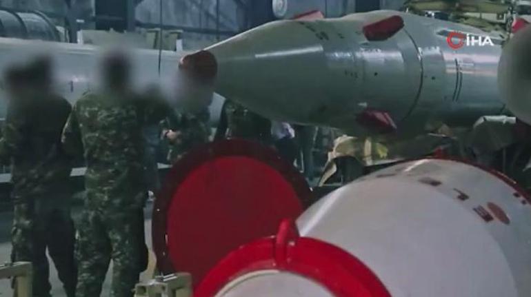 Görüntülerde, yer altı tesislerinde konuşlu İHA’lar, füzeler ve fırlatma sistemlerinin yanı sıra yerden yere füze sistemlerine ait unsurlar yer aldı.